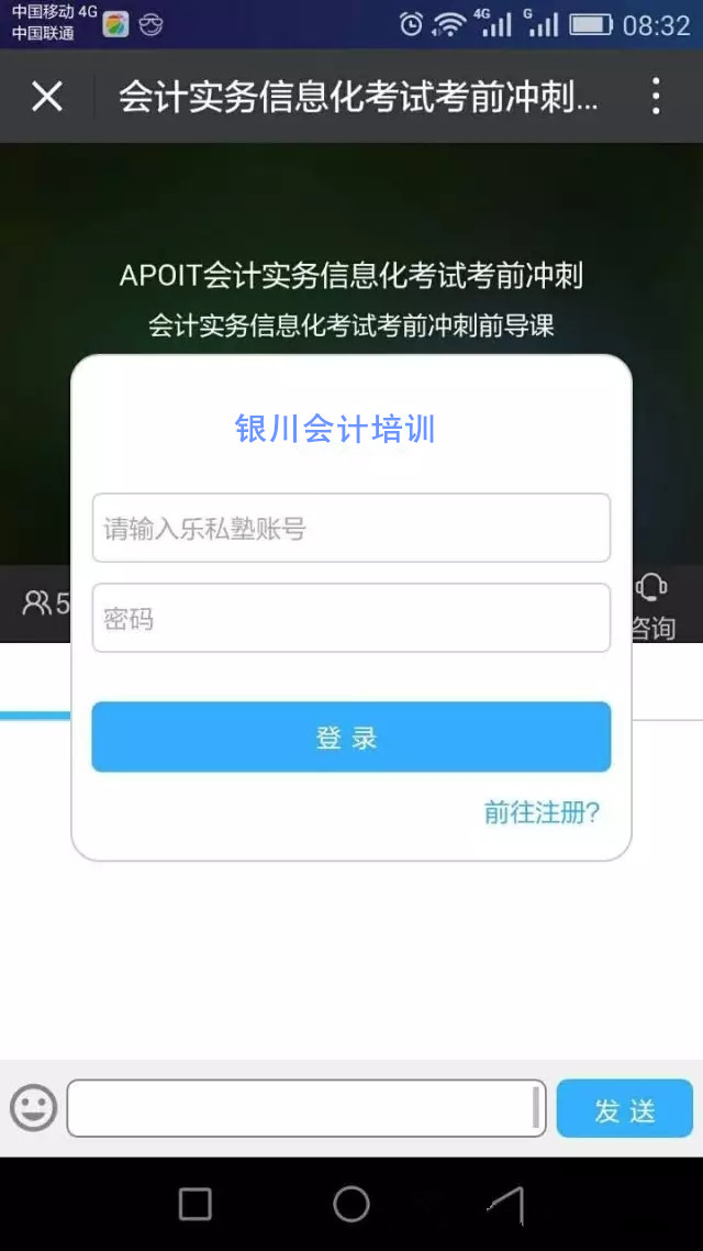 【會計實務(wù)信息化考試考前沖刺千人直播-免費(fèi),免費(fèi),免費(fèi)!】第二季度的考試馬上就要開始了,銀川會計培訓(xùn)中心作為寧夏信息化證官方指定考點(diǎn),將在5月25日-5月30日,19:30-21:30為大家?guī)砬藭媽崉?wù)信息化考試免費(fèi)直播。有意者馬上私信我!精彩內(nèi)容不容錯過~觀看請點(diǎn)擊(請?zhí)崆白裕?span style="line-height:1.6;">:http://t.cn/RaDK8iF(手機(jī)微信登錄)。 13309598437?0951 6028943